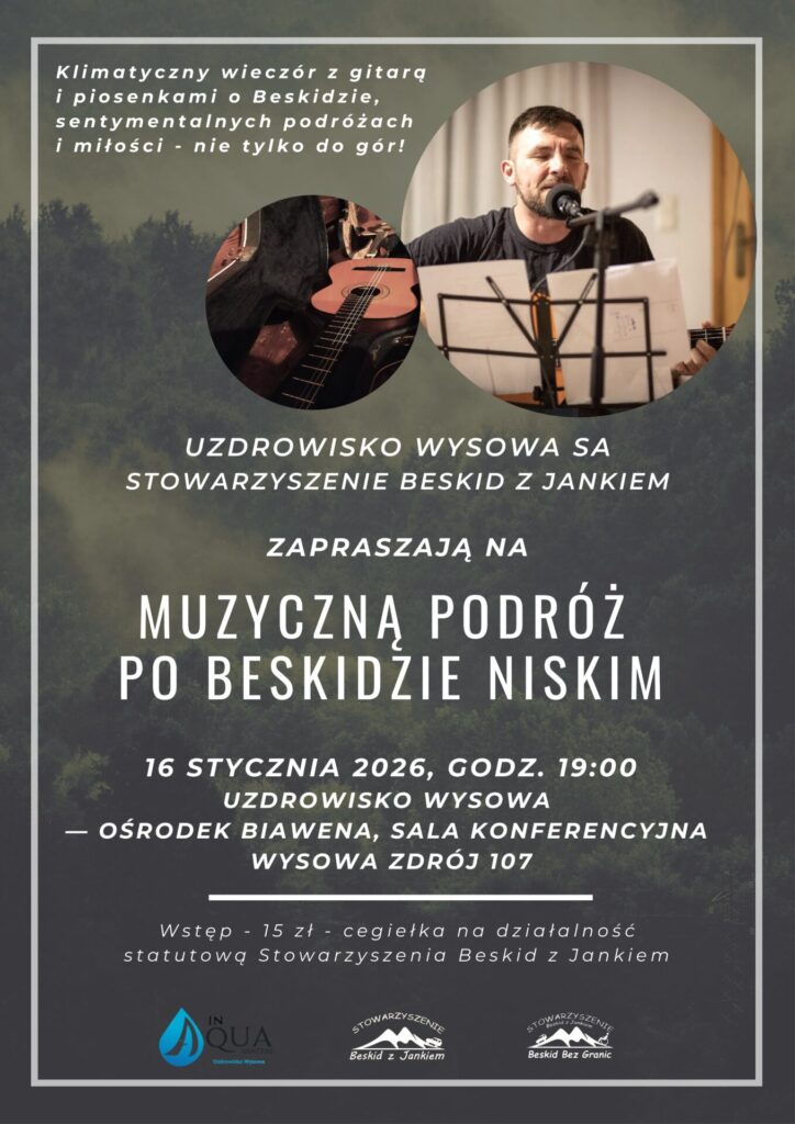 Zapraszamy Państwa na wyjątkowy, kameralny wieczór, w którym muzyka staje się opowieścią, a dźwięk gitary prowadzi przez pejzaże Beskidu Niskiego, pełne ciszy, przestrzeni i emocji.
